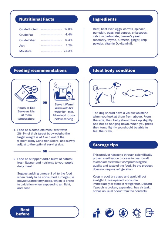 Excellent dog food. My doggie loves it so much. Everytime she can finish eating the dog food (mixed with regular dog food pellets) within few minutes, and appetite improved by much